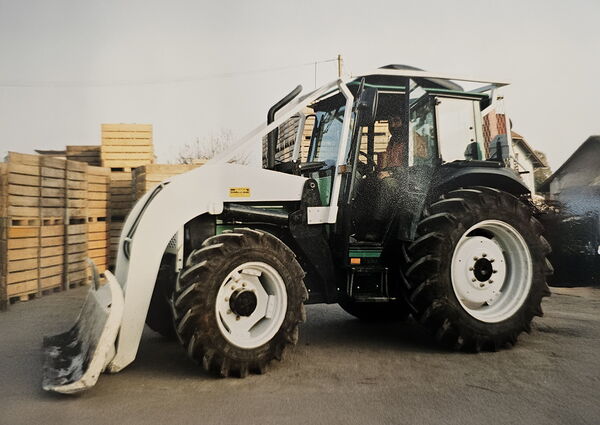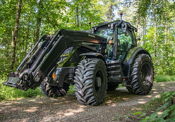 À l'époque : une Valmet 655-4 à Vinelz, dans le Seeland, avec chargeur frontal et protection forestière sur le capot.