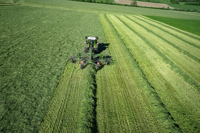 Une fois la coupe terminée, l'herbe doit être retournée rapidement et proprement. Pour cela, Fendt propose également deux gammes de produits : Les faneuses Fendt Lotus et Fendt Twister convainquent toutes deux par leur technique innovante, leur grande efficacité et leur utilisation confortable. Le résultat est une force de frappe maximale sur une largeur de travail maximale de 12,70 mètres.