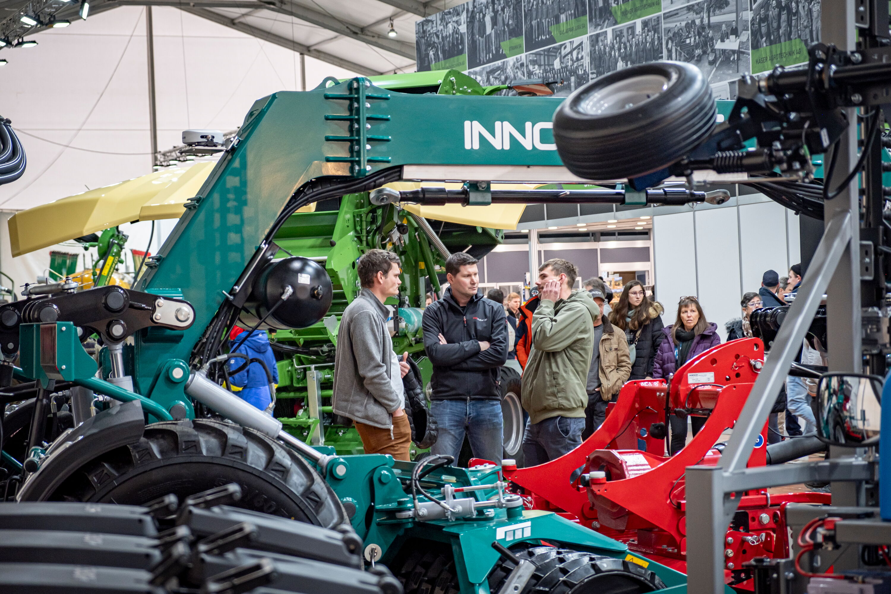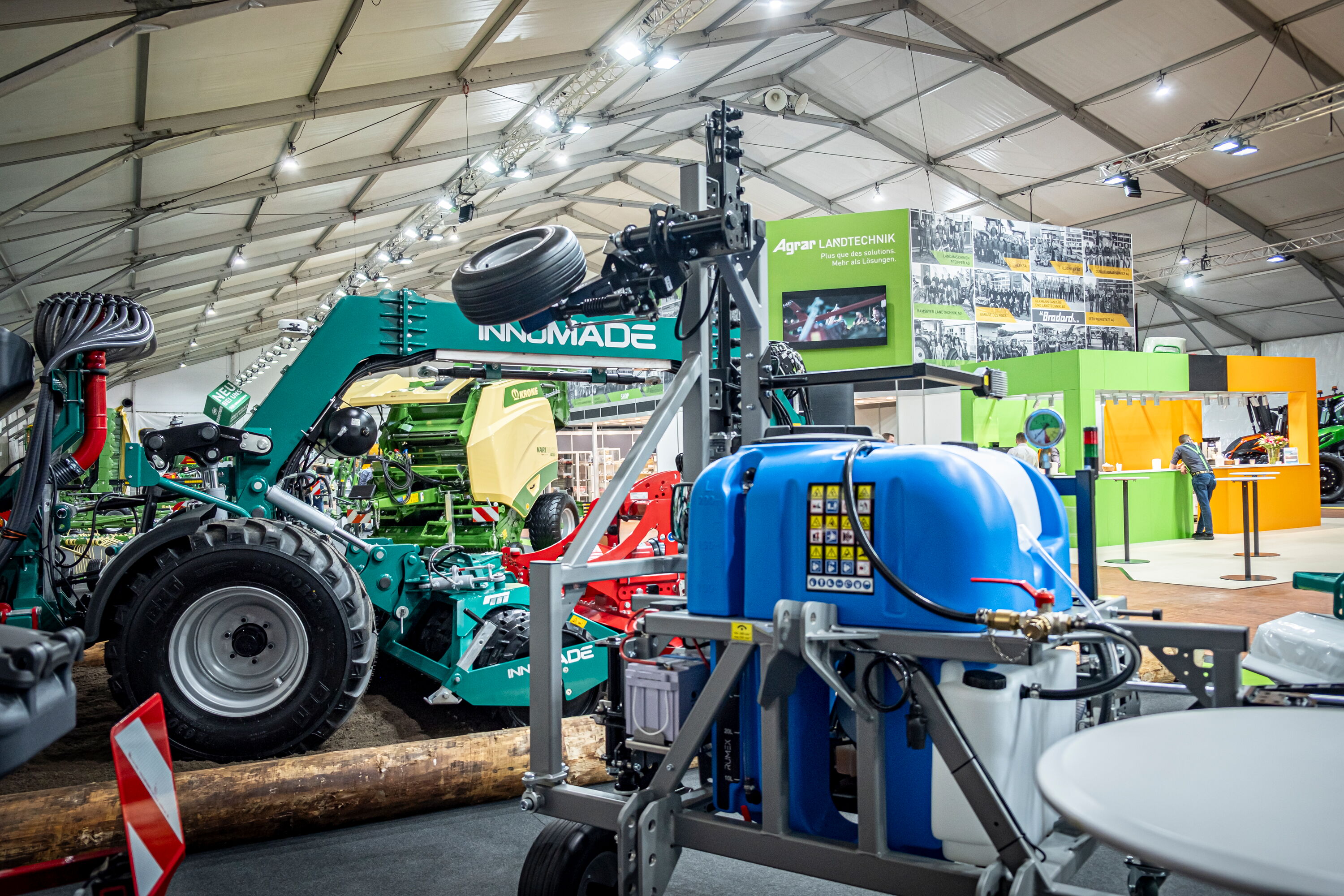 Le salon Agrar Landtechnik AG proposait de nombreuses nouveautés. Le fabricant allemand Innomade a présenté son porte-outils nouvellement développé avec Agrar Landtechnik AG pour ménager le sol et réduire la charge par essieu, que de nombreux visiteurs se sont fait expliquer avec curiosité par notre équipe Terraprofi.