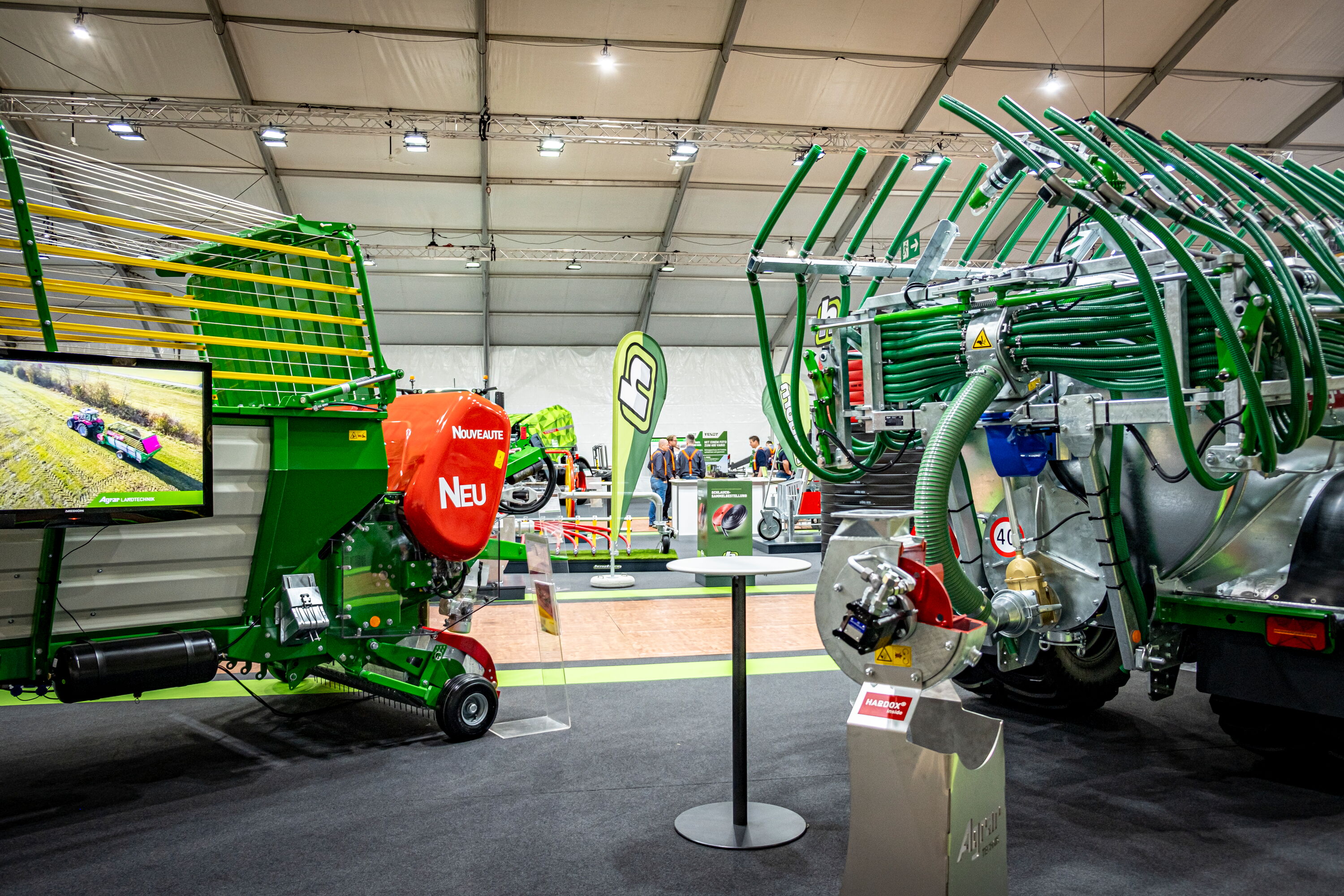Le secteur des techniques d'épandage ainsi que Hadorn ont présenté la nouvelle conception du fût de pompage AGRAR 8000 Gen24+, l'épandeur à sabot d'entraînement très demandé ainsi que l'épandeur « Power-Spread pro+ » de Brantner, nouvellement intégré dans le portefeuille. La division Municipal a attiré l'attention avec les véhicules électriques maniables de Carello.
