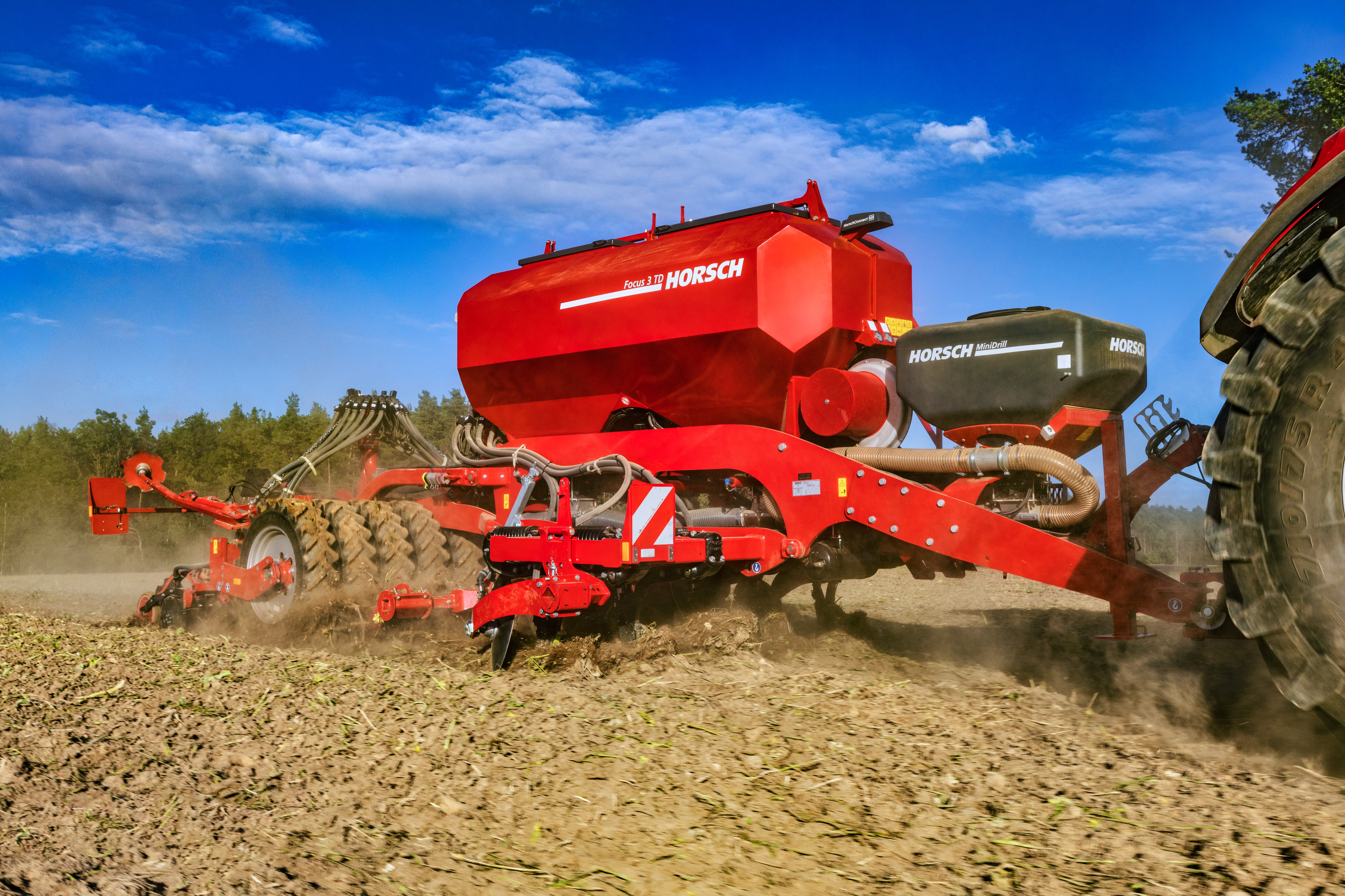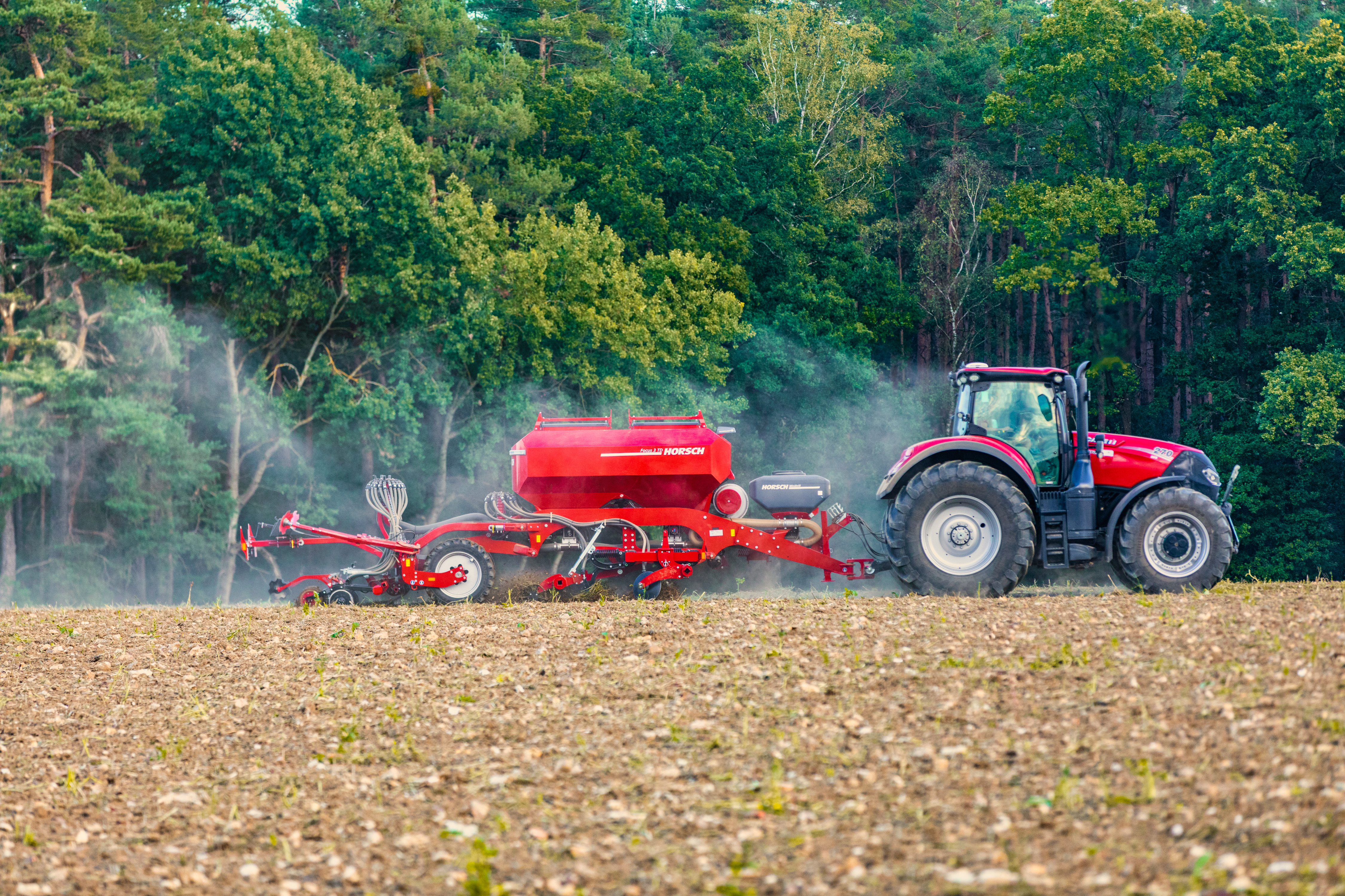 Le concept du Focus 3 TD repose sur la fissuration, l’incorporation d’engrais et le semis en un seul passage et impressionne par sa productivité. Au premier coup d'oeil, le Focus, d'une largeur de trois mètres, se distingue de ses grands frères principalement par sa trémie en acier. La trémie a un volume de 3500 litres avec une répartition 60:40. Pour le reste, le client dispose de toutes les options habituelles de la gamme Focus et peut ainsi adapter sa machine à ses conditions d'exploitation et à ses besoins. Le packer à pneus assure une reconsolidation ciblée et profonde. Le ré-appui du sol qui en résulte permet d'obtenir un lit de semence optimal devant les éléments semeurs. Le packer est précédé de divers outils de nivellement, de buttage ou d'émiettement et ce, en fonction de l'application souhaitée et, le cas échéant, réglables hydrauliquement depuis la cabine.